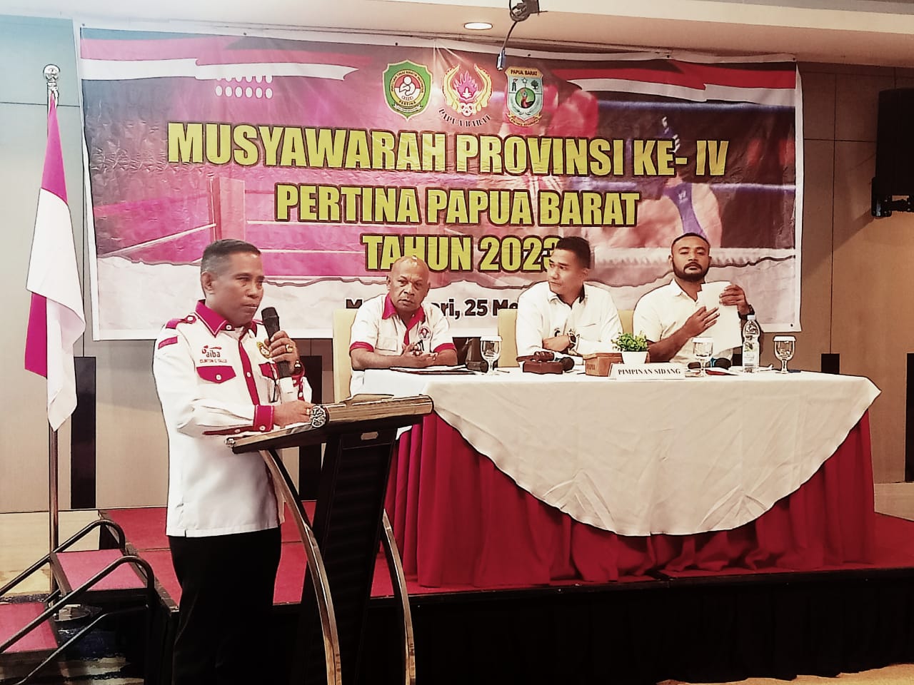 Manokwari, doberainews – Mantan Ketua Umum Persatuan Tinju Amatir Indonesia (Pertina) Provinsi Papua Barat Periode 2019 – 2023 kembali di percayakan memimpin Pertina Papua Barat Periode 2023 – 2027 melalui Musyawarah Provinsi (Musprov) IV Papua Barat yang digelar di salah satu Hotel di Manokwari, Kamis (25/5/2023).