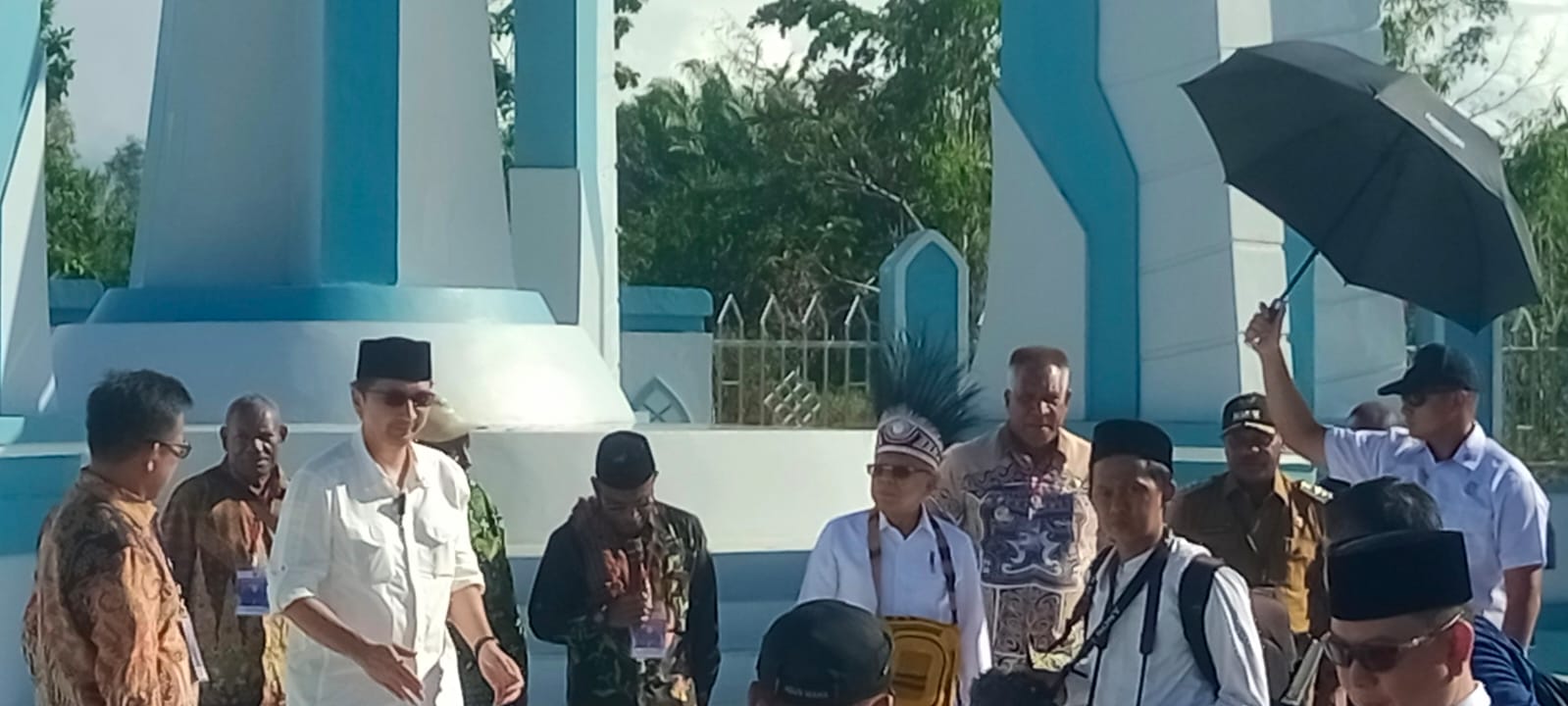 Gubernur Paulus Waterpauw Bersama Wapres RI dan Rombongan juga melihat langsung tugu peradaban Islam Babo dengan berjalan kaki.