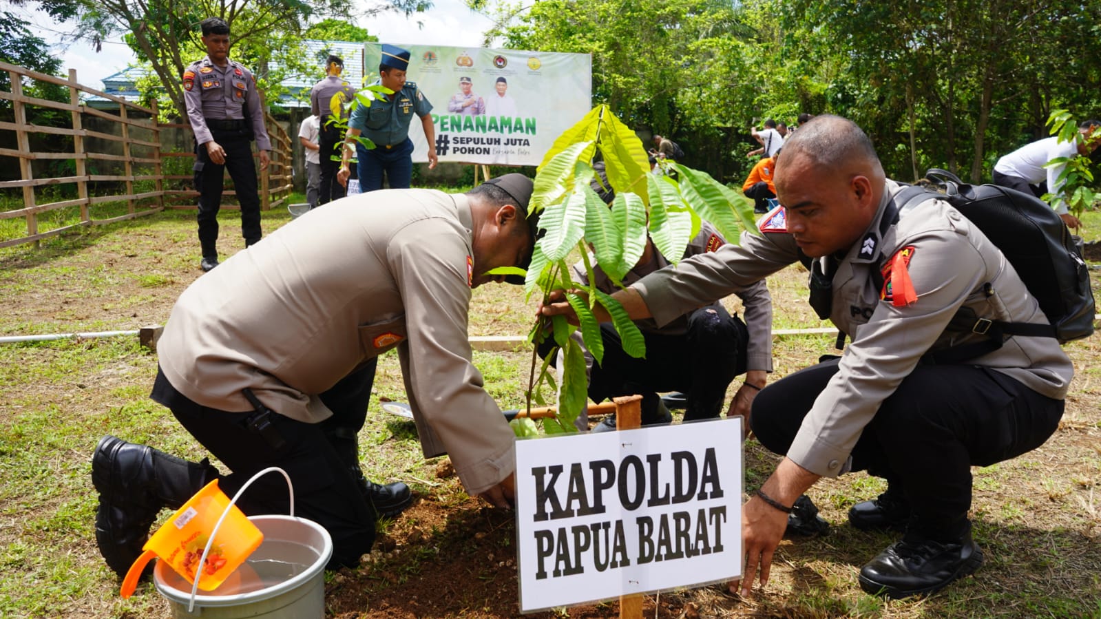 Dari 3.200 Pohon dibagi sehingga Polda menanam 450 Pohon, Polresta Sorong Kota 100 pohon, Polres Manokwari Selatan 100 Pohon, Polres Teluk Bintuni 1.500 Pohon, Polres Kaimana 100 Pohon, Polres Pegunungan Arfak 100 Pohon kemudian Polres Raja Ampat 100 Pohon, Polres Fakfak 100 Pohon, Polres Teluk Wondama 100 Pohon lalu Polres Kabupaten Sorong 110 Pohon, Polres Maybrat 100 Pohon dan Polres Tambrauw 130 Pohon, Polres Sorong Selatan 110 Pohon.