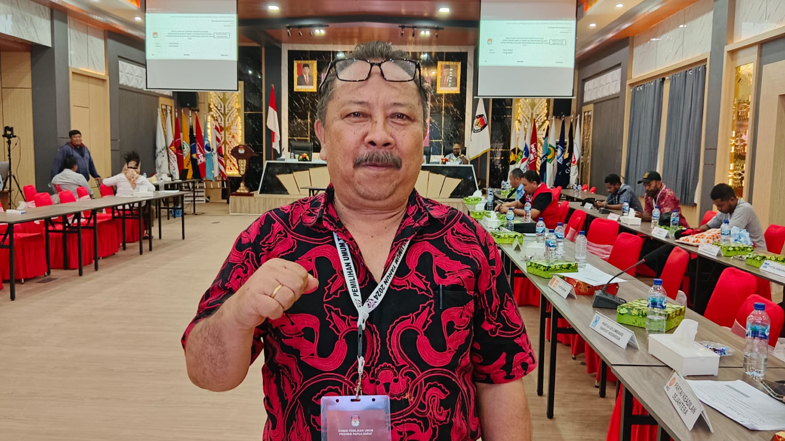 Wakil Sekretaris DPD PDIP Papua Barat, Benny Supit usai mengikuti pleno rekapitulasi perolehan Perhitungan Suara di Aula KPU Papua Barat, Senin (11/3/2024)