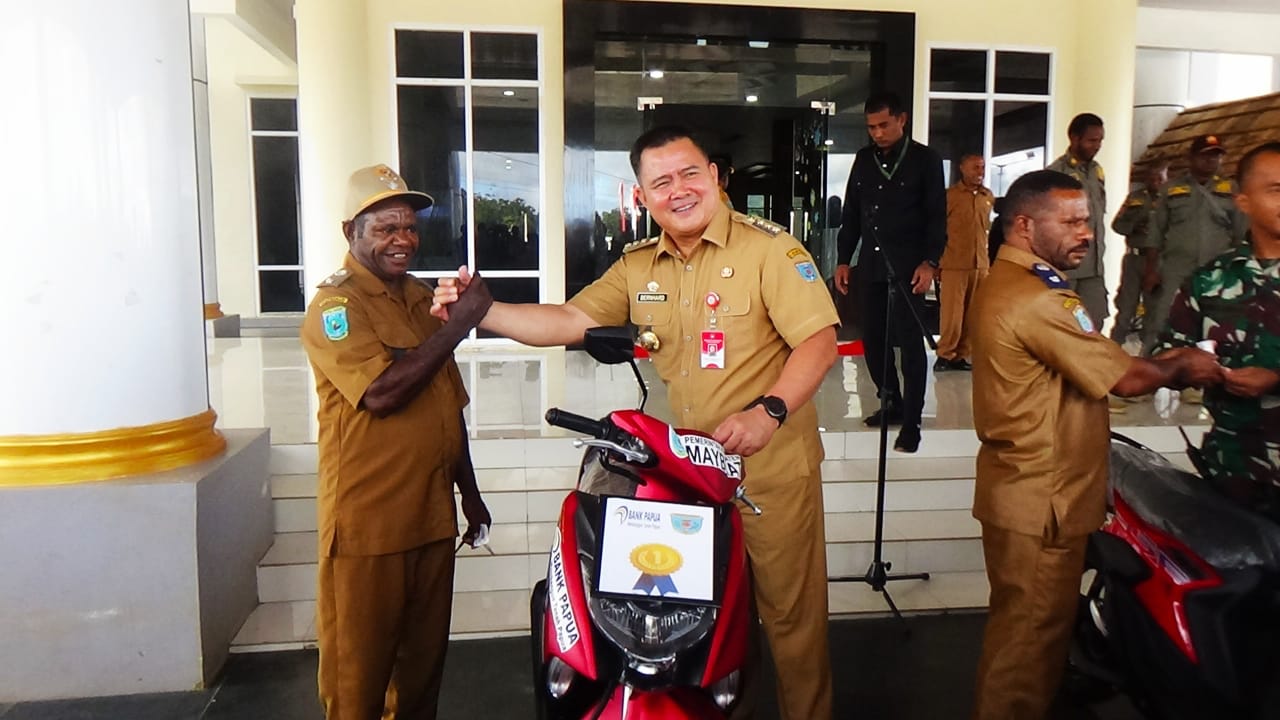 Penghargaan tersebut diserahkan oleh Penjabat (Pj) Bupati Maybrat Bernhard E. Rondonuwu didampingi oleh Kepala Bank Papua Cabang Maybrat, dihadiri Dandim 1809/Maybrat serta perwakilan pimpinan OPD usai apel pagi Aparatur Sipil Negara ASN di lingkungan Pemkab Maybrat, Selasa (28/5/2024).