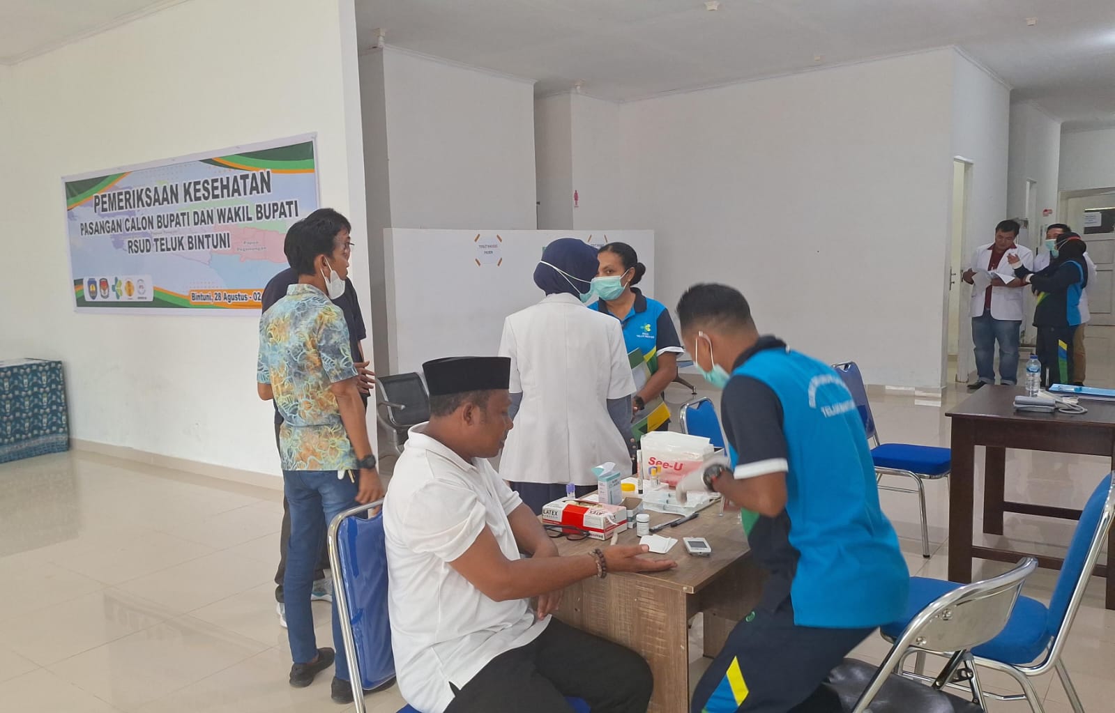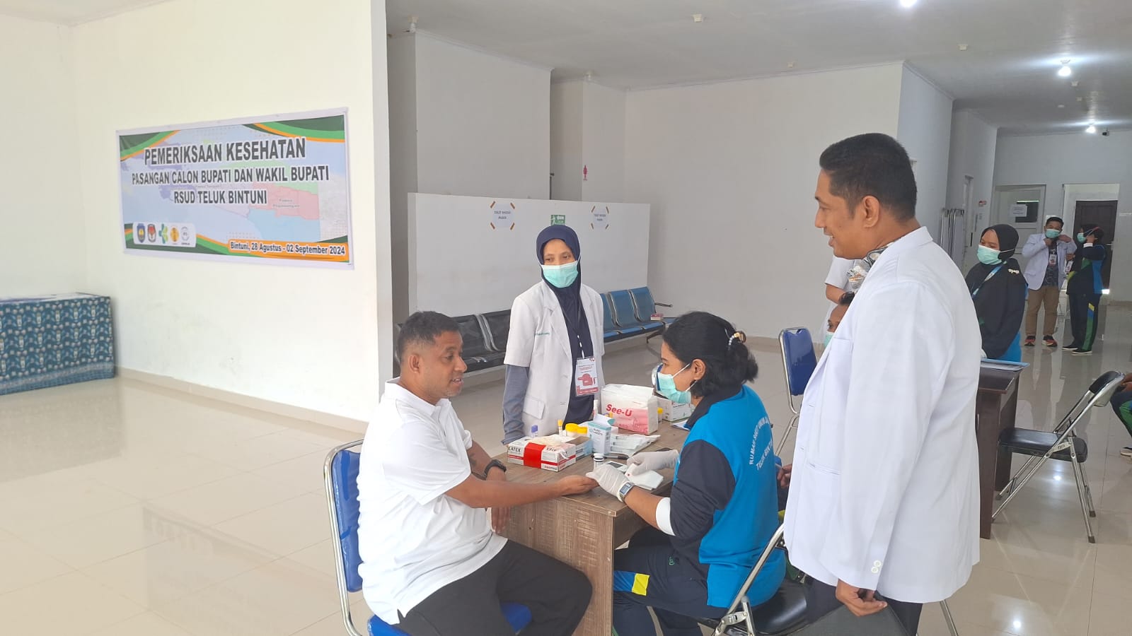 Komisi Pemilihan Umum (KPU) Teluk Bintuni menyebutkan, bahwa para pasangan calon kandidat kepala daerah akan menjalani pemeriksaan kesehatan secara berkala dan bertahap sampai dengan tanggal 31 Agustus 2024 di Rumah Sakit Umum Daerah (RSUD), Kabupaten Teluk Bintuni, Papua Barat.