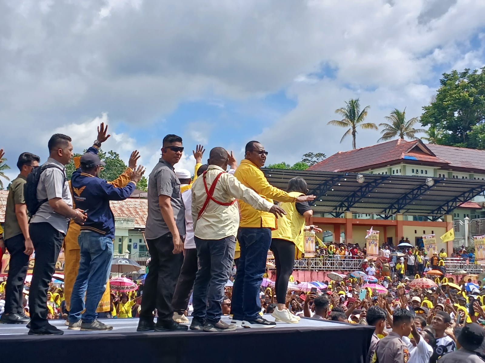 “Bersinar datang kesini karena dia cinta dan sayang sama kita semua. hujan hari ini menjadi hujan berkat untuk kita semua,” tegasnya dalam panggung orasi politiknya.