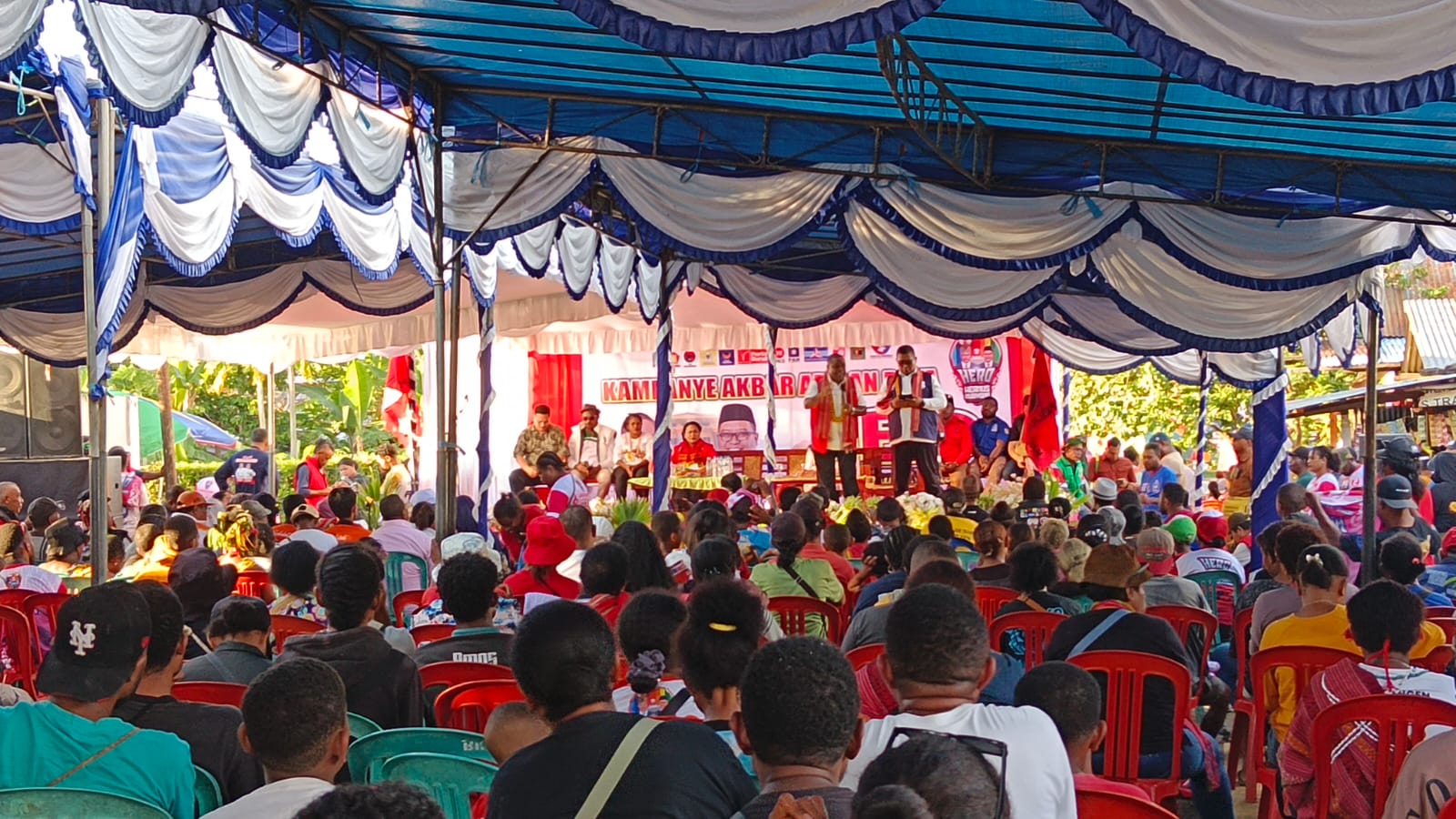 Manokwari, doberainews – Pasangan Calon Bupati Manokwari Nomor Urut 2, Hermus Indou dan H. Mugiyono gelar kampanye terbuka kepada warga di Kelurahan Amban Distrik Manokwari Barat Kabupaten Manokwari, yang digelar di lingkungan Perkam Amban Manokwari, Sabtu (23/11/2024).