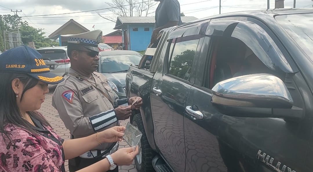 Manokwari, doberainews – Satlantas Polresta Manokwari bersama, Dispenda Papua Barat , Jasa Raharja, UPT Samsat Manokwari melakukan razia pajak maupun razia kendaraan tidak gunakan helm serta pemeriksaan kelengkapan surat kendaraan seperti, SIM dan STNK di Manokwari.