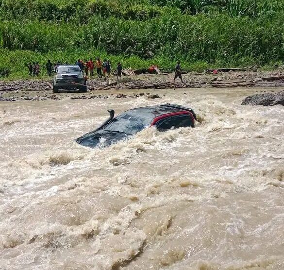 Foto : Salah satu mobil tenggelam terseret Arus Sungai Dibecij Didohu