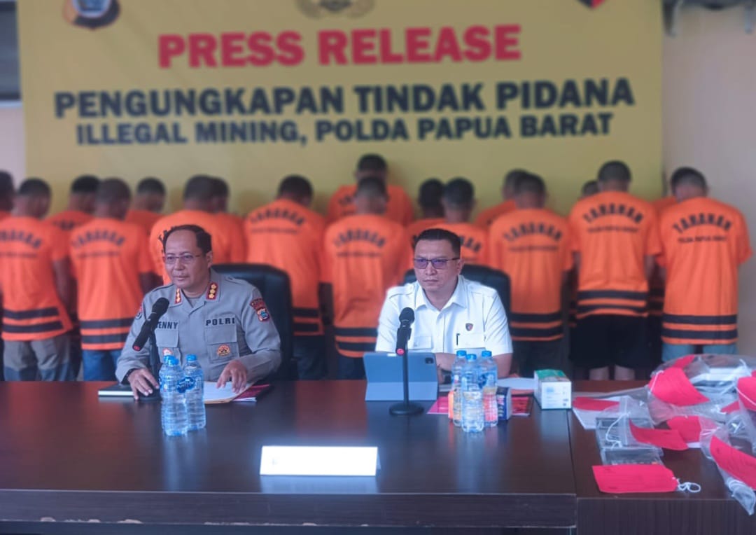 Polda Papua Barat berhasil menangkap JK dan kawan – kawan sebanyak 17 orang penambang, mengamankan 6 alat berat eksavator merek Komatsu dan Caterpillar serta menetapkan 19 orang sebagai Daftar pencarian Orang (DPO).