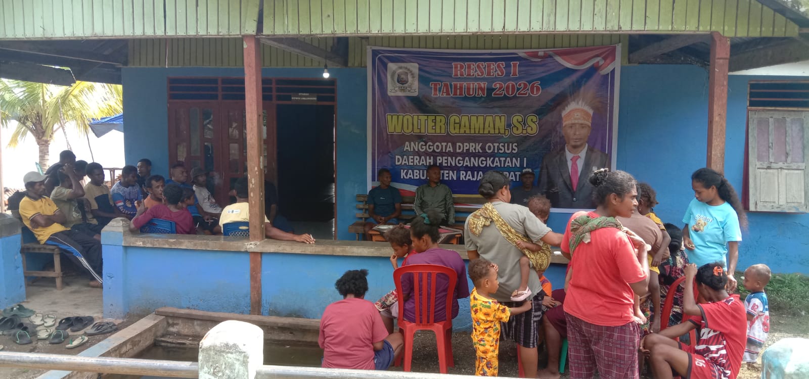 Raja Ampat, doberainews – Anggota DPRK Raja Ampat jalur Otonomi Khusus (Otsus), Wolter Gaman, melaksanakan reses tahap I TA 2026 di Kampung Gow, Distrik Toplol Mayalibit, Kabupaten Raja Ampat, Papua Barat Daya, Rabu (18/2/2026).