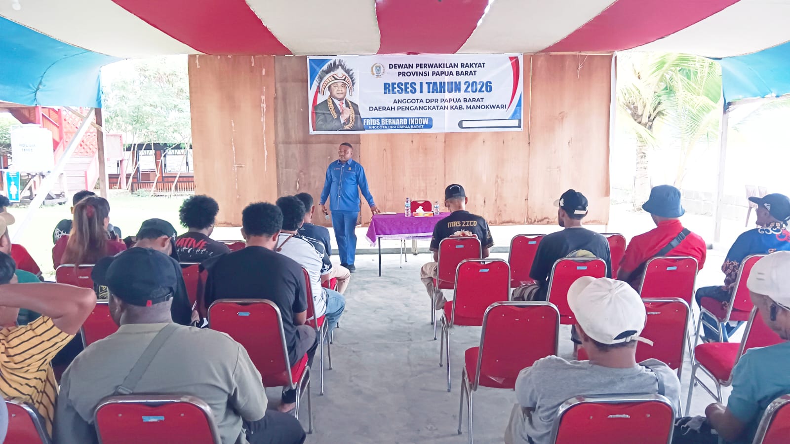 Manokwari, doberainews – Anggota DPR Papua Barat, Frits Bernard Indouw, menggelar Reses I Tahun 2026 bersama berbagai lapisan pemuda kreatif di Kota Manokwari, Papua Barat, Sabtu (21/2/2026)
