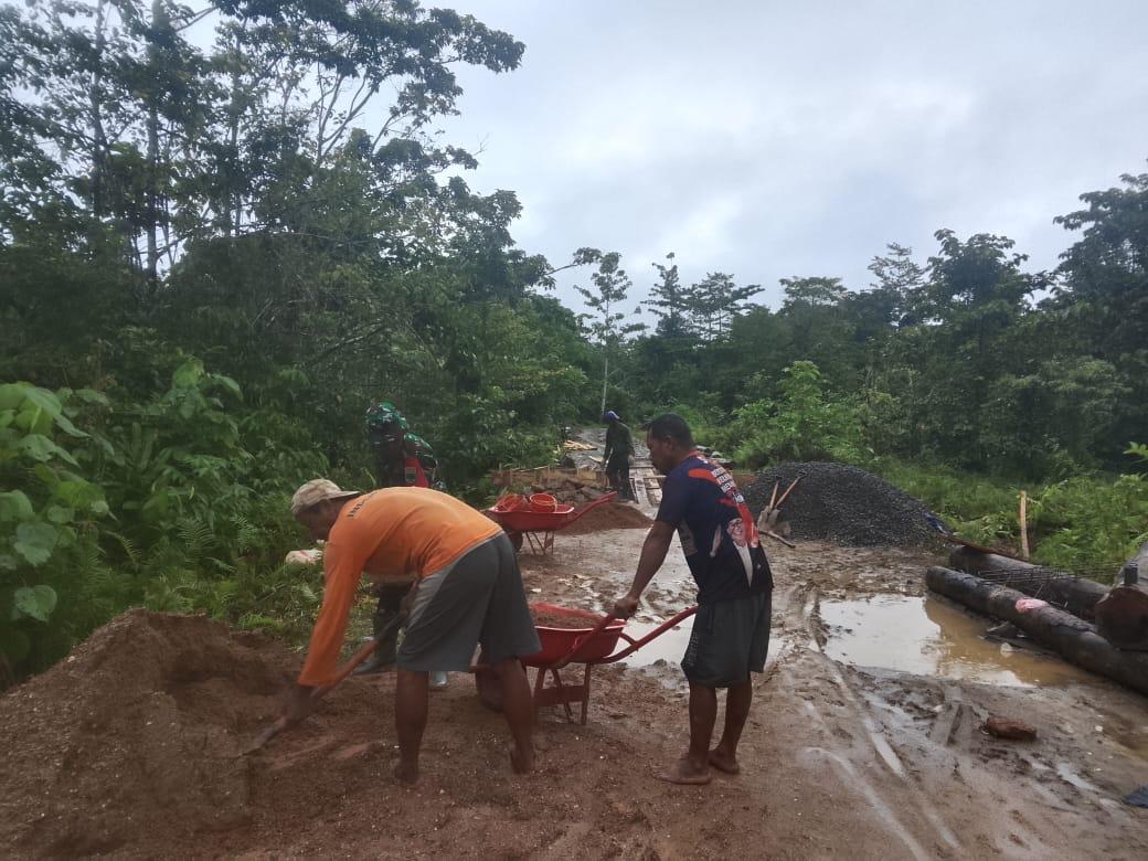 Sejauh ini, pelaksanaan pekerjaan berjalan sesuai rencana. Personel TNI bersama masyarakat setempat terlibat aktif dalam proses pembangunan melalui kerja gotong royong, mulai dari tahap persiapan hingga pengerjaan fisik jembatan.